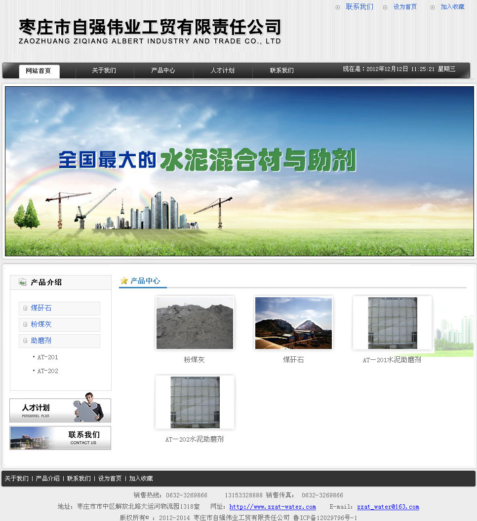 棗莊市自強偉業(yè)工貿(mào)有限責(zé)任公司是一家專門從事水泥混合材料、水泥化學(xué)助劑生產(chǎn)、銷售為一體的規(guī);尽9境D旯⿷(yīng)煤矸石、粉煤灰等水泥生產(chǎn)用混合材料,以及水泥助磨劑、三乙醇胺、乙二醇等水泥生產(chǎn)用化學(xué)助劑。公司注冊資金300萬元,是全國大的水泥混合材與助劑供應(yīng)商之一,現(xiàn)有資源與產(chǎn)品介紹如下: 煤矸石 公司擁有550萬噸煤矸石資源,主要供應(yīng)棗莊中聯(lián)水泥廠、臨沂沂州水泥廠、山東金橋水泥廠以及棗莊周邊50余家粉磨站。是全國大的煤矸石資源提供商。 粉煤灰 公司擁有590萬噸濕粉煤灰資源,以及年產(chǎn)20萬噸干粉煤灰生產(chǎn)線,主要有一級灰、二級灰和濕灰三種產(chǎn)品。是全國大的粉煤灰濕灰資源提供商。 助磨劑 主要產(chǎn)品有AT系列水泥助磨劑。維持原來強度,可多摻9-11%混合材,提高磨機10-20%產(chǎn)量。 水處理劑 主營產(chǎn)品有阻垢劑、緩蝕劑、殺菌滅藻劑、清洗劑、預(yù)膜劑、螯合劑、分散劑、反滲透藥劑、膜阻垢劑等,廣泛應(yīng)用于工業(yè)循環(huán)水、鍋爐及采暖水、油田注水、反滲透膜等系統(tǒng)。