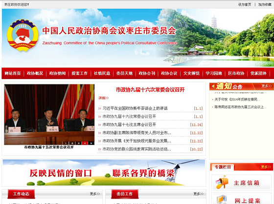 中國(guó)人民政治協(xié)商會(huì)議棗莊市委員會(huì)簡(jiǎn)稱棗莊政協(xié)或棗莊市政協(xié),中國(guó)人民政治協(xié)商會(huì)議(簡(jiǎn)稱“人民政協(xié)”),是中國(guó)人民愛國(guó)統(tǒng)一戰(zhàn)線的組織,是中國(guó)共產(chǎn)黨領(lǐng)導(dǎo)的多黨合作和政治協(xié)商的重要機(jī)構(gòu)。人民政協(xié)由中國(guó)共產(chǎn)黨、各民主黨派、無黨派民主人士、人民團(tuán)體、各民族和各界的代表,臺(tái)灣同胞、港澳同胞和歸國(guó)僑胞的代表以及特別邀請(qǐng)的人士組成。 |