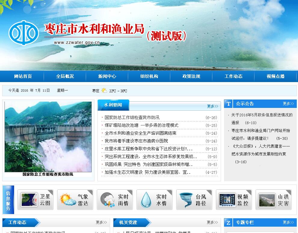 棗莊市水利和漁業(yè)局門戶網(wǎng)站開始試運行,請多提建議!